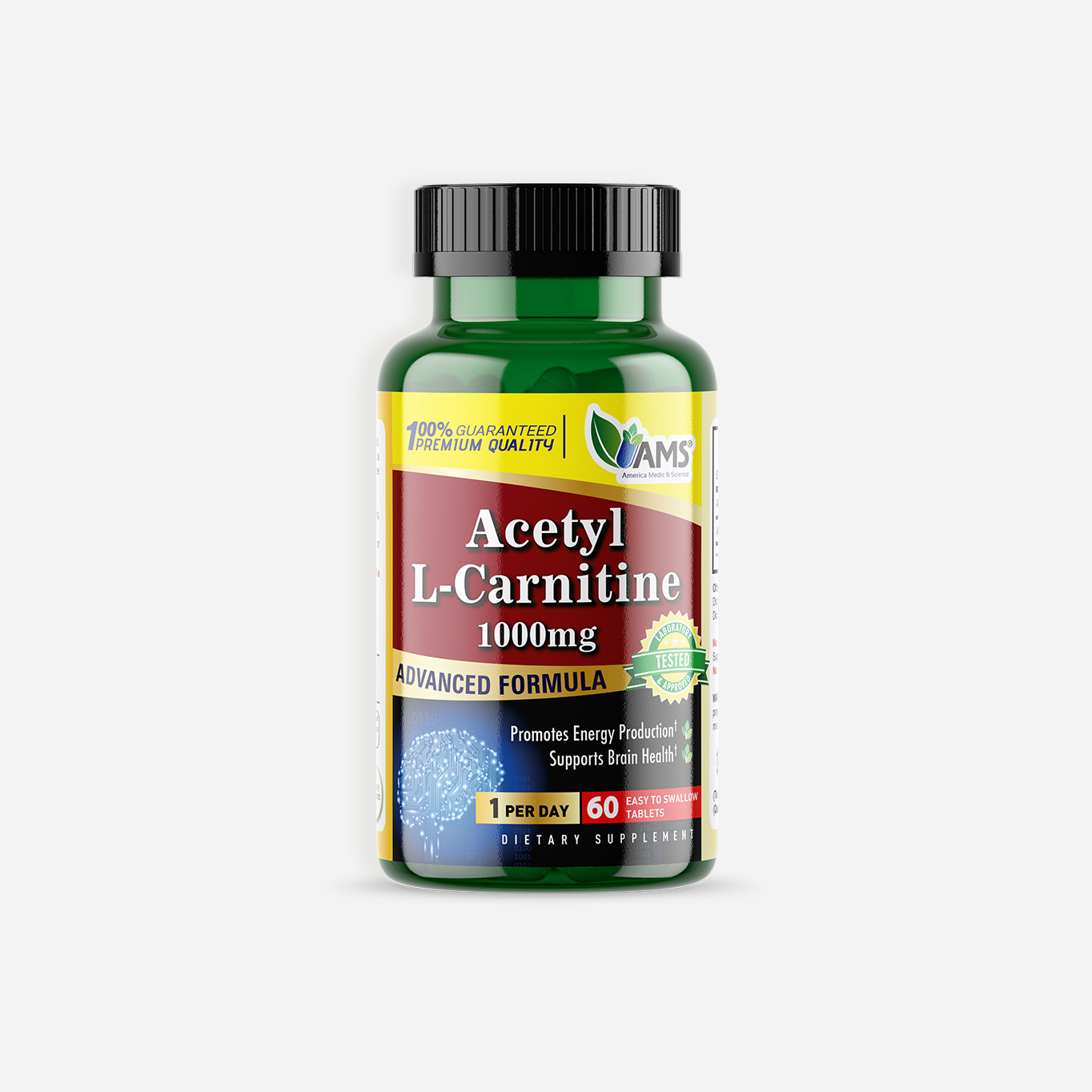 AMS® Acetyl-L-Carnitine is an amino acid that is naturally produced in the body. It helps the body produce energy and it is important for brain function, muscle movement, and many other body processes. Regular intake of AMS® Acetyl-L-Carnitine dietary supplement maintains a healthy nervous system and helps improve memory as well as recovery following exercise.